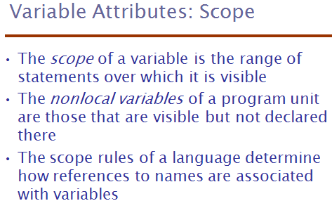 When a procedure does not call other procedures, the scope and lifetime of a variable are similar.The referencing environment of a statement is the collection of all names that are visible in the statement