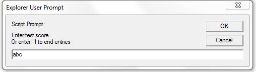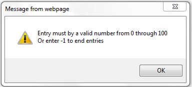- User may enter letters or numbers not in a range 0 to 100, or not -1, as below: